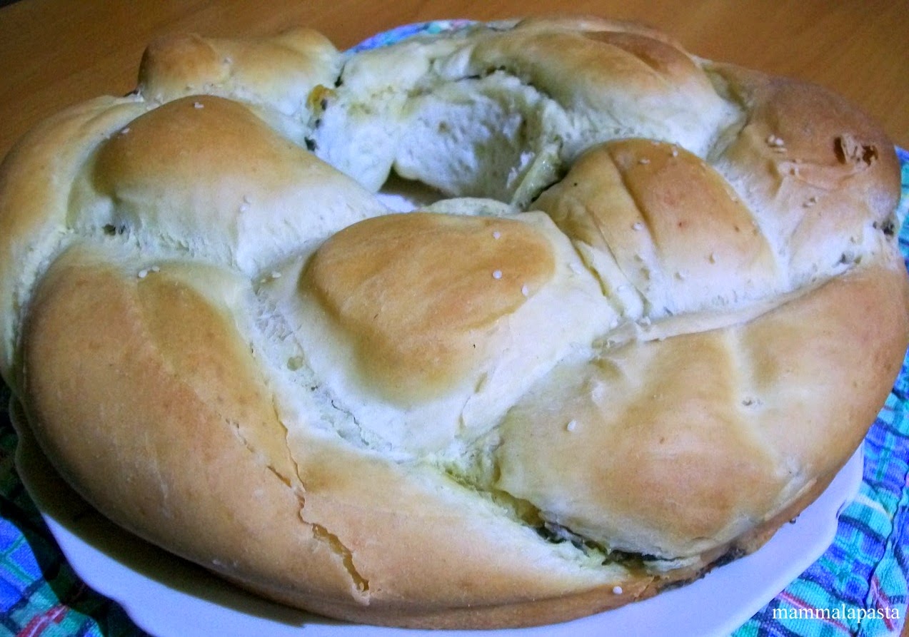 Pan brioche denumeste in italiana -via franceza – un aluat foarte aerisit, fin, usor, aproape ca de paine, dar imbogatit cu ou, lapte si unt/ulei in compozitie, in versiune sarata sau dulce, in functie de ce vreti sa obtineti in final. Eu am impletit in trei aluatul, iar pe fiecare dintre cele trei rulouri le-am umplut cu urzici si mozzarella, dupa cum o sa vedeti mai jos. Puteti foarte bine inlocui urzicile cu spanac, la fel si branzeturile, sau puteti inventa alte combinatii, inclusiv cu carne pregatita anterior, prosciutto etc. Aveti nevoie de o tava rotunda de circa 30 cm diametru ca sa iasa ca a mea. Daca nu, o puteti face si intr-o tava dreptunghiulara. Important e sa o impletiti, ceea ce face ca in final umplutura sa fie dispusa in toata compozitia, nu doar in mijloc, precum la o tarta in format simplu.