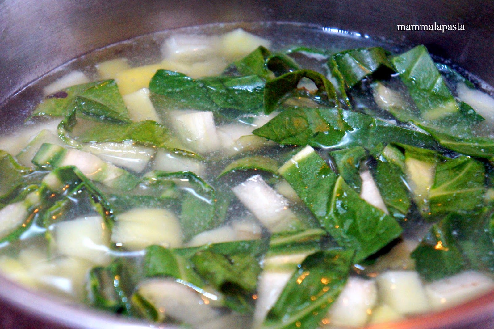 – 200 g frunze de varza sau, dupa preferinte, alte legume verzi de iarna, merge bine si spanacul, eu am folosit coste (zise si bietole)