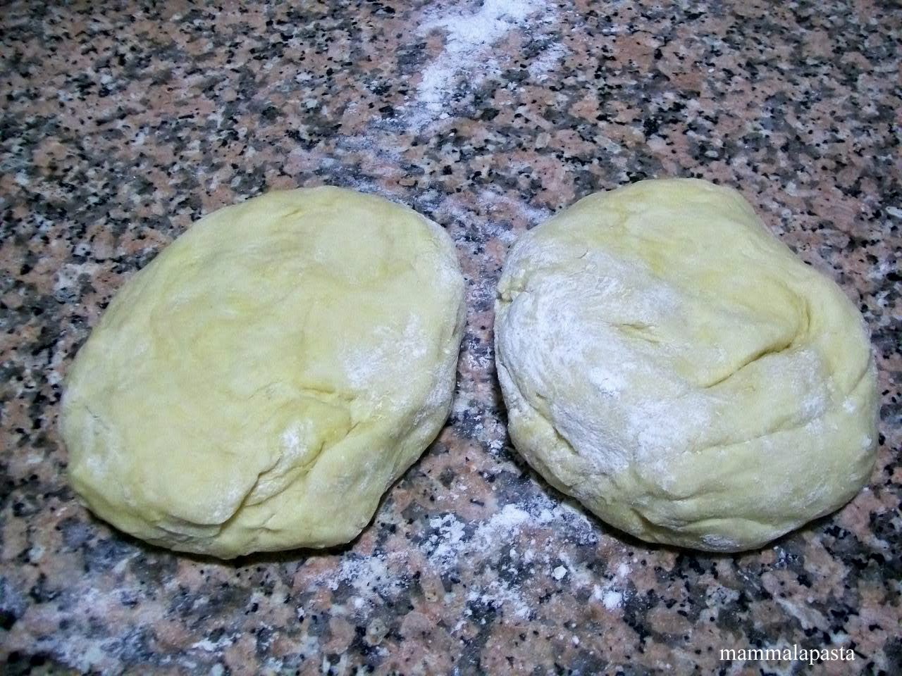 Cand e gata de a fi prelucrat, il impartiti in doua jumatati, pentru ca trebuie sa obtinem doua foi rotunde:
